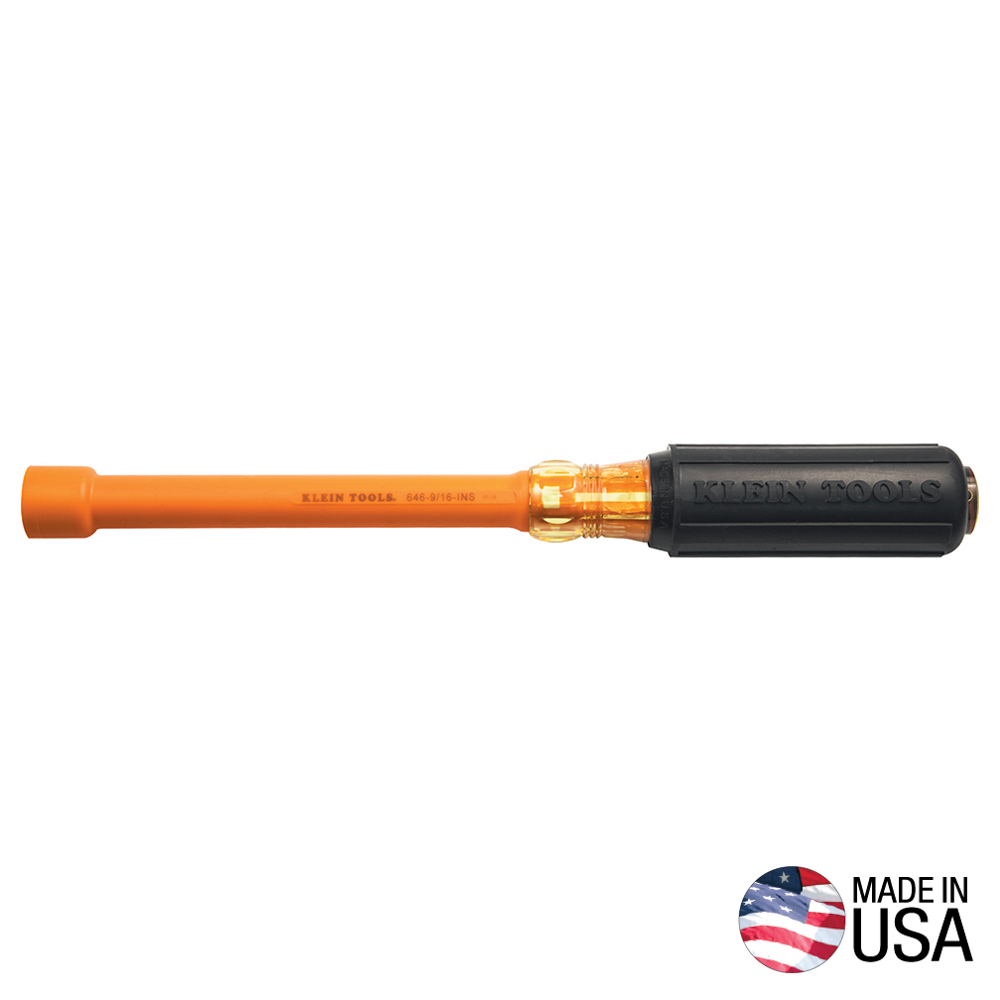 The ÀÇÓÑÉçÇø Insulated 9/16-Inch nut driver features two layers of insulation to provide protection against electrical shock. The thick, exceptionally tough, high-dielectric white inner coating is bonded to the tool. The bright orange outer coating is flame and impact resistant.